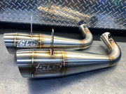 The SLG Megaphone is for the most extreme racers, it is our loudest pipe by far, if you want to announce your presence in a big way look no further than the SLG Megaphone exhaust. We use slightly thicker stainless materials than the competition therefor keeping that signature SLG deep non raspy tone. The Megaphone is only available as they come, they do not have the option of quieting them down nor do they accept a spark arrestor.